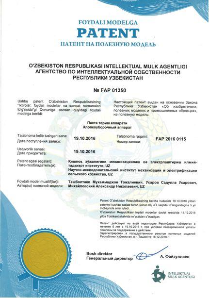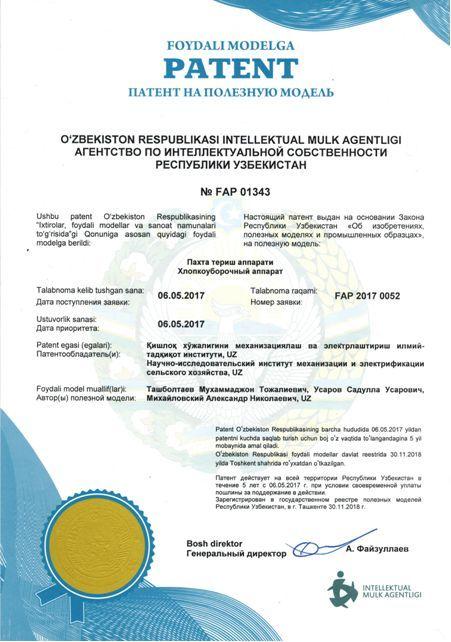 2015-2021 йиллар давомида лаборатория ходимлари томонидан қуйидаги лойиҳалар бўйича И.Т.И.лари бажарилган: 1. КХИ-2-002-2015 “Тик шпинделли пахта териш машиналари учун шпинделларни ювиш ва тозалаш тизимининг макет нусхасини тайёрлаш ва ишлаб чиқаришга тадбиқ этиш” (Изготовление макетного образца системы обмыва и очистки шпинделей для вертикально-шпиндельных хлопкоуборочных машин и внедрение в производство) инновацион лойиҳаси бўйича: Ишлаб чиқилган тракторнинг пневмотизимидан фойдаланилган ҳолда қўшимча сув насоси ва унинг юритмасини ишлатмайдиган шпинделларни ювиш ва тозалаш тизими пахта териш машинаси ишининг барқарорлигини бутун иш сменаси давомида сақлайди. Пахта териш машинасини яратилган шпинделларни ювиш ва тозалаш тизими билан жиҳозлаш шпинделларни ювиб тозалашга кетадиган кунлик иш вақтининг қўшимча сарфини камайтиради ва шу билан пахта териш машинасининг иш унумдорлигини оширади. Таклиф этилаётган пахта териш машинаси технологик иш жараёнининг самарадорлиги терилган пахтанинг миқдори ва сифатини ортиши ҳисобига 80,8 минг. сўм/hа ни, тажриба машинасини ишлатишдан олинган умумий иқтисодий самара 159,4 минг.сўм/hа ни ташкил этади. 2. КХИ-2-003-2016 «Тик шпинделли пахта териш аппарати учун пахтани ерга тўкилишини камайтирувчи қурилманинг тажриба нусхасини тайёрлаш ва синаш» (Изготовление и испытание опытного образца устройства для снижения потерь хлопка на землю к вертикально-шпиндельному хлопкоуборочному аппарату) инновацион лойиҳаси бўйича: Пахтани ерга тўкилишини камайтириш пахта териш машинасининг иш жараёнида олдинги шпинделли барабанларда жойлашган, қайтиб чиқаётган пахтани йиғиб олувчи қурилмани ишлатиш орқали амалга оширилди. У терим аппаратининг технологик схемасини мураккаблаштирмайди ва унинг барча конструктив ва кинематик ўлчамларини ўзгаришсиз сақлайди. Пахта териш машинасининг ишлаб чиқилган қайтиб чиқаётган пахтани йиғиб олувчи қурилма билан жиҳозлаш пахта терими тўлиқлигини бир теримда ўртача 2,85% га, икки теримда – 3,83% га ошириш имконини берди, бу ўсишлар ғўза тупига яхши ишлов бериш ва пахтани ерга тўкилишини камайтириш ҳисобига эришилди. 3. КА-3-002-2016 “Замонавий пахта териш машиналари билан пахта ҳосилини йиғиб олишнинг юқори самарадор технологиясини ишлаб чиқиш” (Разработка высокоэффективной технологии уборки урожая хлопка-сырца современными хлопкоуборочными машинами) амалий лойиҳаси бўйича: Пахта ҳосилини кўсакларнинг очилиши юқори бўлганда териш мавжуд пахта териш машиналари иш унумдорлигини оширишнинг энг самарали усулларидан эканлиги аниқланган. Бу ҳолда терим учун сарфланадиган қўшимча ҳаражатлар камаяди ва пахта терими нархини сезиларли камайтириш мумкин. Шу билан бирга ғўза дефолияцияси ва машина теримининг мақбул муддатлари пахта толаси ва ипнинг хусусиятларини комплекс тақдиқ этиш асосида аниқланиши керак. Очилган пахтанинг бир марта машина терими кўриб чиқилаётган пахта териш технологияларига нисбатан энг юқори даромад олишга имкон беради. Бу кўсакларнинг очилиши юқори бўлганда терилаётган пахтанинг миқдорини ошиши билан боғлиқ. Кўсакларнинг очилиши ошиши пахта териш машинасининг терим тўлиқлигини кўсаклар очилиши 56% ва 75% бўлганда биринчи теримда 73,7% дан 81,7% гача, кўсаклар очилиши 88,0% бўлганда – 88,58% гача кўпайишини таъминлайди. 4. И-ҚХ-2017-5-2 инновацион лой